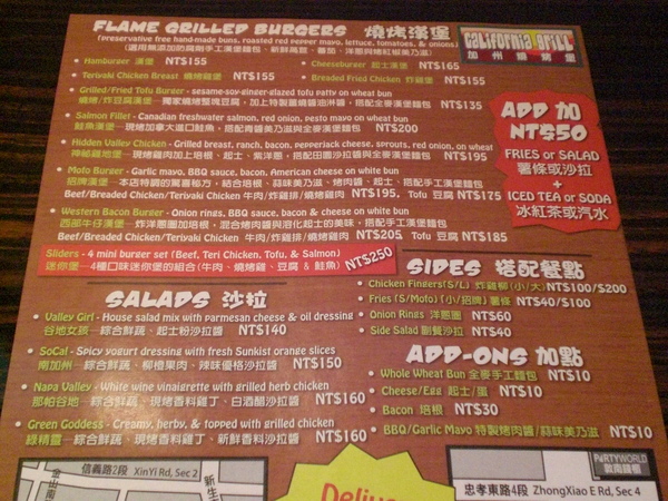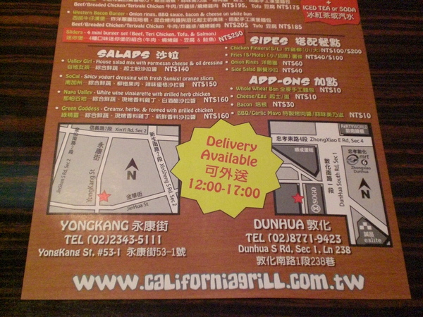 。利用網路搜尋引擎,作點小功課,確認了這家〝加州燒烤堡〞在格友心中的份量後,便與阿滿相約他下班後一同去冒險啦!之所以不去永康店,主要是因為交通因素,另一個主因則是因為好像敦化店才有提供迷你堡,這對向來胃容量有限又喜歡多種嚐試的我來說,是個最適合的選擇不過了。