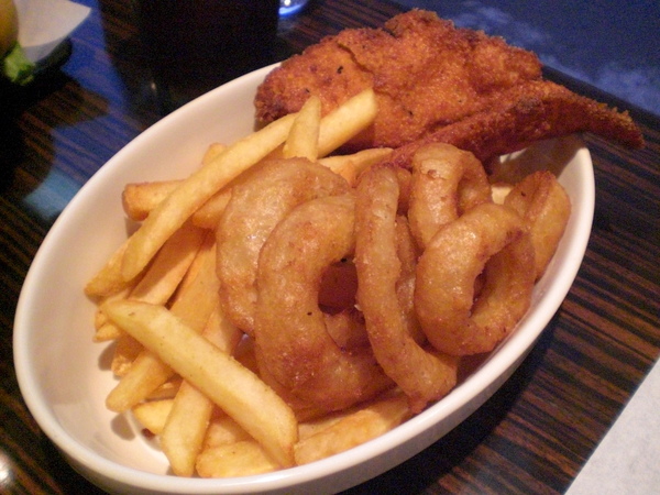 炸雞柳薯條 ─ 小份 ─ NT.100 ( 洋蔥圈是搭配在套餐裡頭的 )
