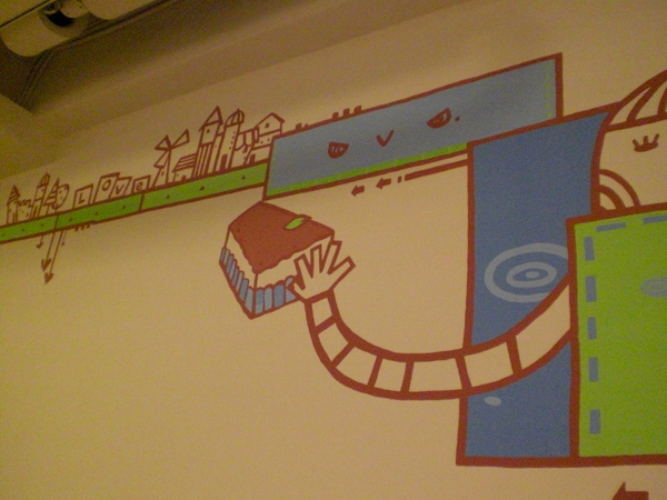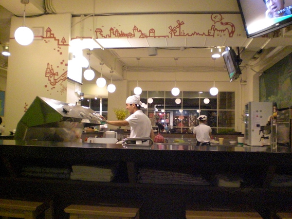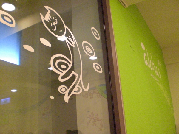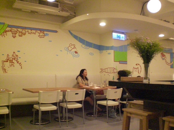 一進門服務人員很快就趨前帶位,在用餐過程中的服務也很親切,最後結完帳時還把我倆送到店門口,服務真是周到,不過不曉得客人多的時候是否還能如此 ? 店內的裝潢很簡潔,潔白的牆上點綴著充滿童趣的塗鴉,在鵝黃色燈光的陪襯下,讓整個餐廳顯得明亮而溫暖,洋溢著溫馨的感覺。