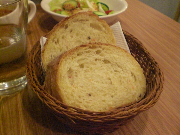 在用餐方式上,可以單點主菜,不過我很建議配成套餐,因為價格不貴,共有三種價位可選 : NT.80、130、160,內容上略有不同。這次配的是 NT.160 的套餐,內容有店家自製的天然發酵麵包 + 前湯 + 沙拉 + 甜點 + 飲料,其中甜點跟飲料的部分可以任選 menu 上的各款,超過八十塊的補差額即可。不過翻翻 menu ,會超過八十塊的實在不多,看來野草餐廳還蠻有誠意的,加分 !