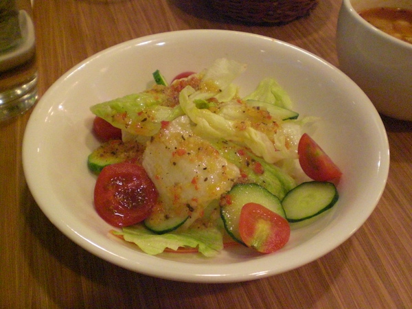 沙拉的沾醬是油醋醬,偏酸的滋味很能讓人食欲一振,而裏頭的蔬菜口感鮮脆,蠻不錯的