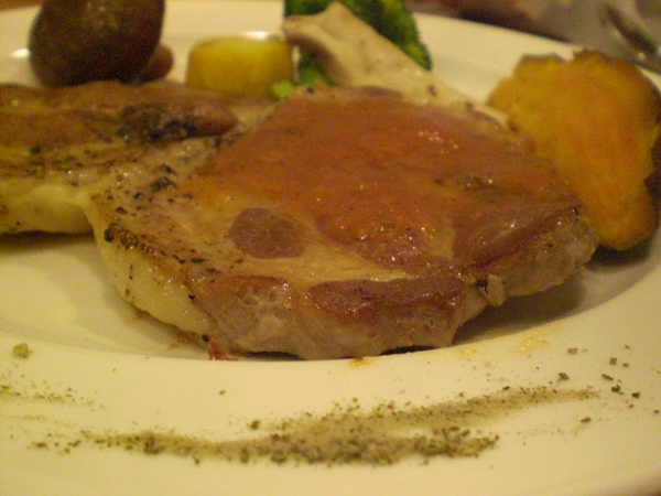 豬排部分的肉質很有咬勁,而且本身富含油花,在香草鹽的襯托下越咀嚼越香,非常好吃