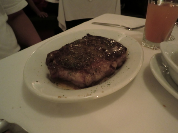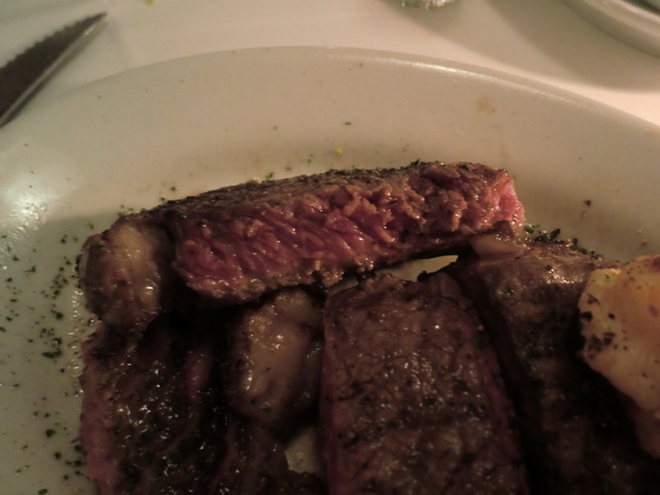 同菲力一樣,肋眼也是點五分熟的 (這樣送上來就接近七分熟了),因此看起來牛排粉粉嫩嫩而不帶血