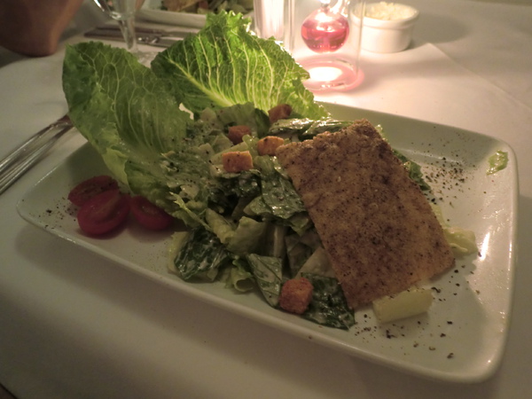 這回來三位大人有志一同都點凱薩沙拉,醬汁已經很勻稱的拌在生菜(蘿蔓)上了