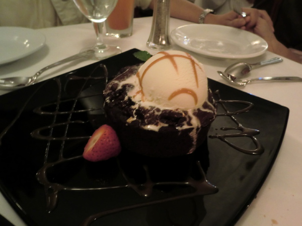 巧克力蛋糕則是會爆漿 (像熔岩),蛋糕本體熱熱的,配上冰淇淋真是冰火五重天 XD