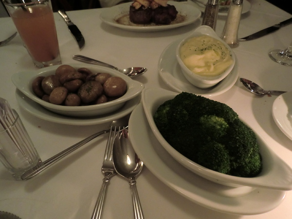 依順時鐘方向為馬鈴薯泥 → 水煮花椰菜佐荷蘭醬 → 炒磨菇,每一款的味道都很棒