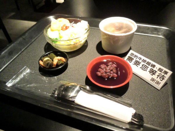 由於是由肉品供應商直接經營的餐廳,所以成本便直接反映在價格上,硬是親切許多,店內最貴的牛排也才 NT.398。不過來這裡用餐,還真得改掉吃排餐的習性,因為沙拉、湯、甜點等並非用餐重點,所以通通都只點到為止 (難怪我吃飽飽後,還跑去晴光市場,買了一個晴光紅豆餅吃,才肯罷休