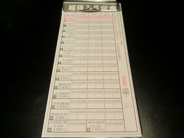 想吃什麼主菜自己劃 (配菜都相同),價位從 NT.198 ~ NT. 398