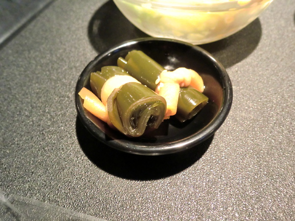 這次的小菜是海帶蒟蒻煮(下右),味道就是日式醬油煮的那種滋味,鹹中帶甜,海帶有煮透,咬斷不費力