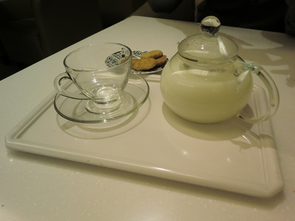 桂花鮮奶綠 NT.135 (右),奶味濃重,可惜桂花香氣不是很明顯,搭配的手工餅乾倒是出奇的順口