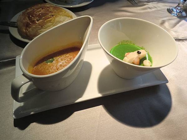湯 ─ 酥皮牛尾清湯 (左) & 松露海鮮濃湯 (右)