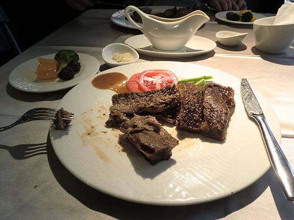 作法上應該是有先滷過,所以熟度只有一種,那就是全熟,整塊牛排分為帶筋與不帶筋兩部份