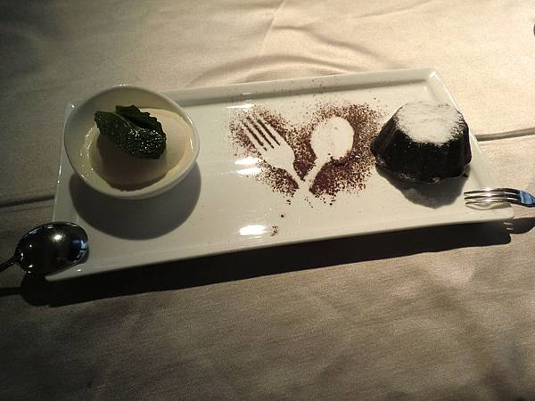 甜點部分選了烤熔漿巧克力冰淇淋 (左)