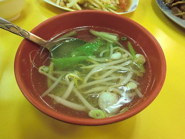 點麵、飯、河粉類都會附一碗小魚丸湯,湯頭清淡爽口,裡面蔬菜滿滿,很適合在炎炎夏日裡享用